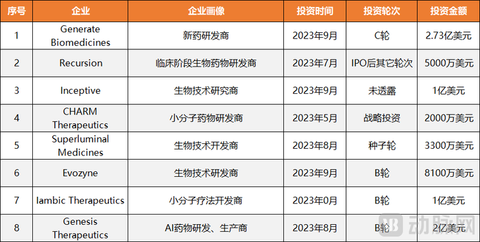 图2.英伟达一年投资8家AI制药企业,数据来源:动脉橙