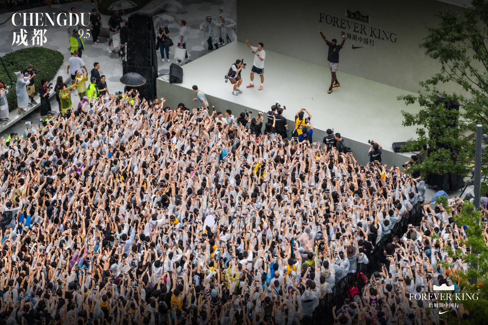 成都万象城耐克店铺门外的球迷见面会上,詹姆斯登台的那一刻,现场化作沸腾的海洋。无数屏幕同时亮起,球迷以最真挚的方式,回应着偶像的到来。有甜品店老板亲手制作了LeBron XXIII主题蛋糕,蛋糕还原了球鞋的轮廓,还加上醒目的皇冠标志。也有专程从澳洲飞来的家庭,孩子身穿湖人球衣坐在母亲肩头,跨越8000公里只为在上海看一眼心中的王者。