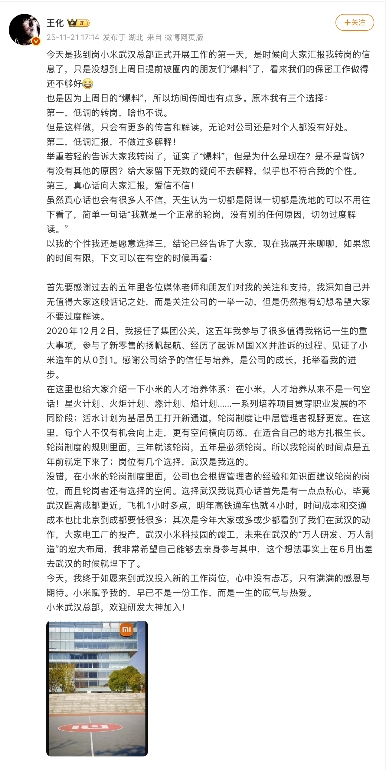 小米公关部大调整,王化转岗武汉总部,徐洁云回归接任新职务 小米公关部总经理王化已确认转岗至武汉区域总部,由徐洁云接任,这一人事变动表明小米在加强区域总部建设的同时,也在进行内部人才调整和优化,此举有助于提升公司整体运营效率和竞争力。...